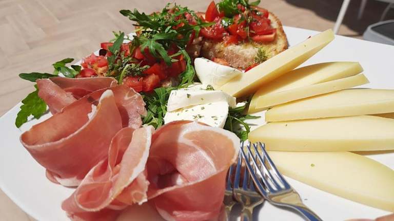 Ein italienisches oder glutenfreies Frühstück wird als Buffet in der Unterkunft serviert. Im hauseigenen Restaurant können die Gäste die italienische Küche geniessen. Auf Anfrage werden zudem milchfreie und glutenfreie Optionen angeboten. Für kleinere Snacks stehen eine Snackbar und ein Café zur Verfügung, während Grillmöglichkeiten im Garten die Zubereitung von Grillfesten ermöglichen.