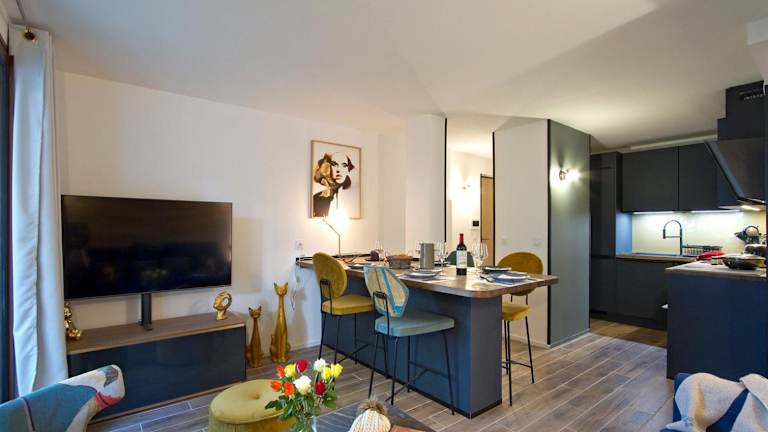 Die Unterkunft verfügt über eine voll ausgestattete Küche mit Kühlschrank, Kaffeemaschine, Geschirrspüler, Ofen, Mikrowelle und Wasserkocher. Zudem sind ein TV sowie ein eigenes Badezimmer mit Dusche vorhanden.