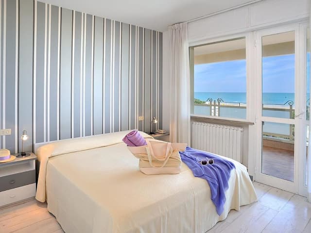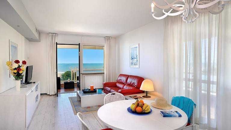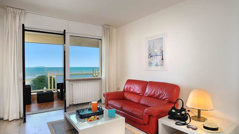 Die Residence Riccione Beach Apartments bietet Übernachtungsmöglichkeiten mit modernen Annehmlichkeiten. Die Unterkunft verfügt über eine Terrasse mit Meerblick, die den Gästen eine entspannende Atmosphäre bietet.