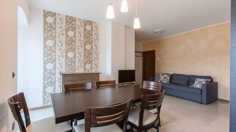 Die Wohneinheiten der Residence Samont sind mit Parkettböden ausgestattet und bieten eine voll ausgestattete Küche mit Kühlschrank, Ofen, Mikrowelle, Herdplatte, Kaffeemaschine und Wasserkocher. Sie verfügen über einen Essbereich, einen TV mit Satellitenkanälen sowie ein eigenes Badezimmer mit Bidet und Haartrockner.