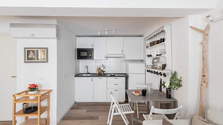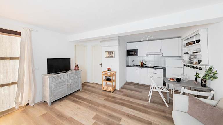 Die Ferienwohnung besteht aus einem Schlafzimmer, einem Wohnzimmer und einer voll ausgestatteten Küche mit Kühlschrank und Kaffeemaschine. Zu den weiteren Annehmlichkeiten gehören ein Badezimmer mit Bidet und Dusche sowie die Bereitstellung von Handtüchern und Bettwäsche.