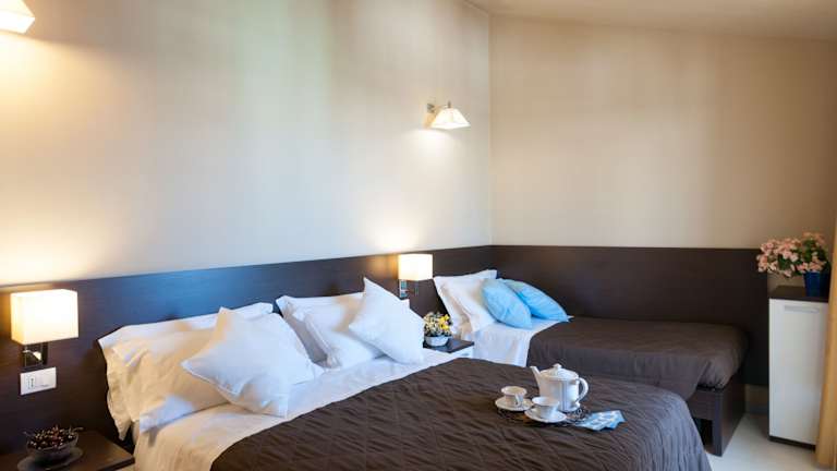 Die Apartments sind komfortabel eingerichtet und bieten Platz für bis zu 5 Personen. Die meisten Zimmer verfügen über einen Balkon oder eine Terrasse. In den Zimmern stehen ein Queensizebett und ein Sofabett zur Verfügung. Jedes Apartment ist mit Klimaanlage, Heizung, Minibar, Safe sowie Sat-TV ausgestattet. Die Badezimmer sind mit Dusche, Bidet und Haartrockner versehen und bieten eine Auswahl an kosmetischen Artikeln und Handtüchern.