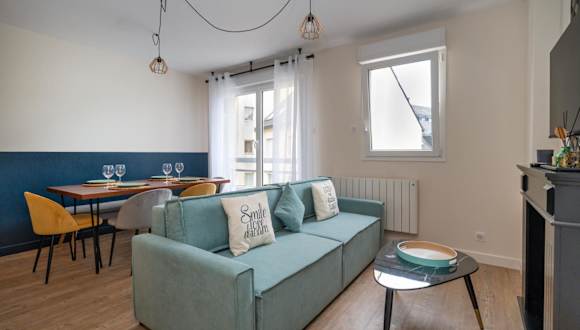 Die Résidence St Marc - L'Art Déco - Centre ville bietet geräumige Apartments mit 2 Schlafzimmern, die Platz für bis zu 4 Personen bieten. Die Apartments verfügen über ein komfortables Wohnzimmer mit einem Flachbild-Kabel-TV und eine voll ausgestattete Küche mit einem Kühlschrank. Handtücher und Bettwäsche werden gestellt, um den Gästen einen angenehmen Aufenthalt zu ermöglichen. Kostenfreies WLAN ist in allen Bereichen der Unterkunft verfügbar.