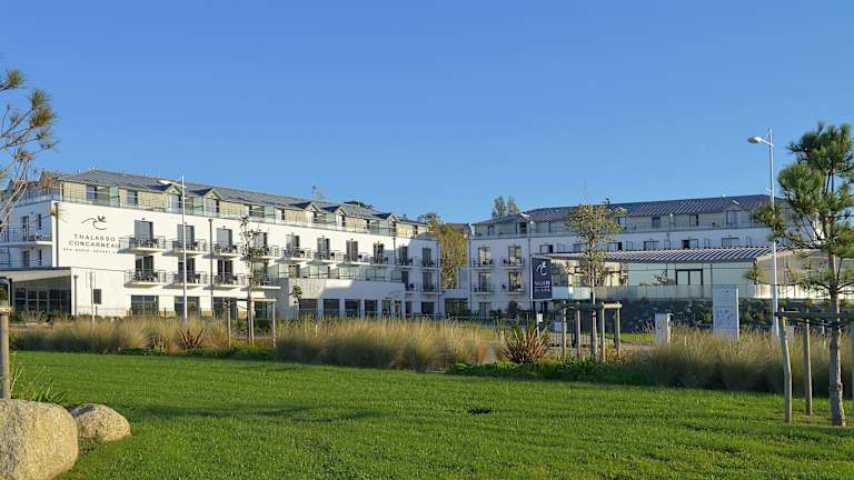 Die Residence Thalasso Concarneau befindet sich in der Bucht von Concarneau, nur 200 Meter vom weissen Sandstrand entfernt. Die Innenstadt mit verschiedenen Lebensmittelgeschäften und Restaurants ist 1,5 Kilometer entfernt. Quimper ist in einer 25-minütigen Autofahrt zu erreichen.