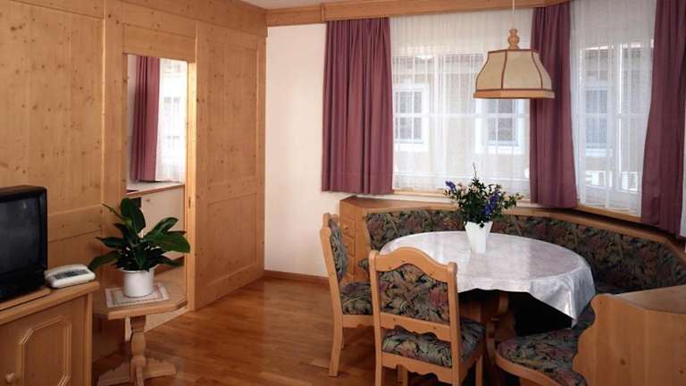 Die Apartments in der Residence Unterhuber sind mit Parkettböden und klassischen Holzmöbeln ausgestattet. Jedes Apartment besitzt ein Wohnzimmer mit Essbereich und ein eigenes Badezimmer mit Badewanne. Zudem steht eine gemeinschaftliche Waschmaschine zur Verfügung.