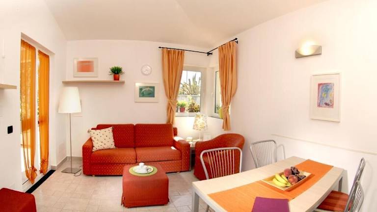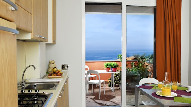 Die Zimmer sind klimatisiert und bieten einen Balkon oder eine Terrasse mit Meerblick. Sie sind ausgestattet mit einem Doppelbett oder einem Queensize-Bett. Die Kochnische beinhaltet einen Kühlschrank sowie eine Tee- und Kaffeemaschine. Jedes Zimmer verfügt über ein eigenes Bad mit Dusche oder Badewanne. WLAN ist kostenlos im Zimmer verfügbar.