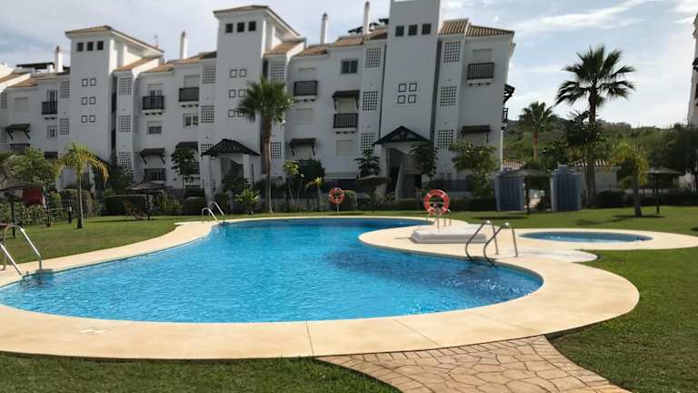 Die Ferienwohnung ist ausgestattet mit 2 Schlafzimmern, 2 Badezimmern, Bettwäsche, Handtüchern, einem Flachbild-TV, einer voll ausgestatteten Küche und einer Terrasse mit Blick auf den Pool.