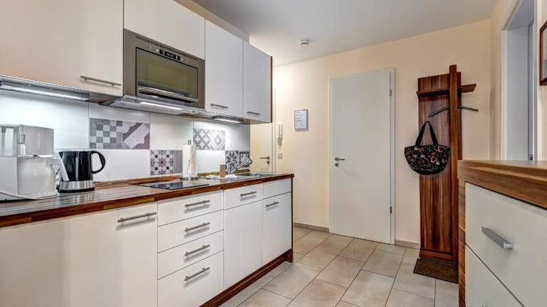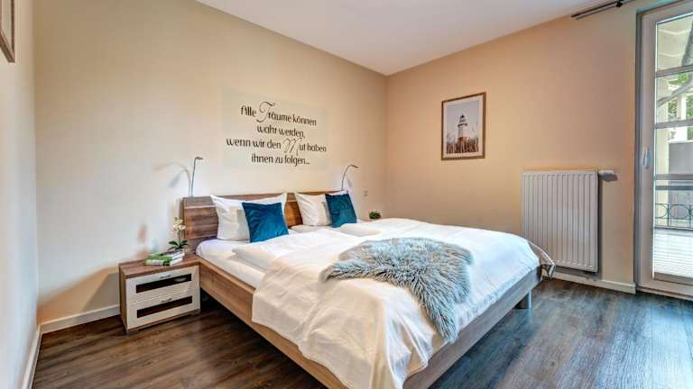 Die Ferienwohnung verfügt über 2 Schlafzimmer, eine voll ausgestattete Küche mit Kühlschrank und Geschirrspüler sowie ein Badezimmer mit Dusche, Haartrockner und Waschmaschine. Handtücher und Bettwäsche werden zur Verfügung gestellt. Ein Balkon sorgt für zusätzlichen Platz und Ausblick.