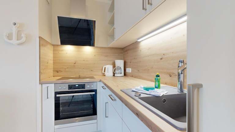 Die Ferienwohnung verfügt über ein Schlafzimmer, ein Wohnzimmer mit Flachbild-TV und Satellitenkanälen, sowie eine voll ausgestattete Küchenzeile mit Kühlschrank und Geschirrspüler. Ein Badezimmer mit Haartrockner sowie die Bereitstellung von Handtüchern und Bettwäsche sind vorhanden. Die Unterkunft ist zudem als Nichtraucherunterkunft ausgewiesen.