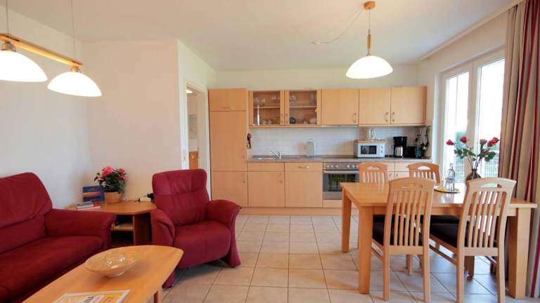 Die Ferienwohnung besteht aus 2 Schlafzimmern, einem Wohnzimmer und einer voll ausgestatteten Küche mit Kühlschrank und Kaffeemaschine. Ein Badezimmer mit Dusche und Badewanne steht zur Verfügung. Handtücher und Bettwäsche werden bereitgestellt. Haustiere sind auf Anfrage erlaubt, wobei Gebühren anfallen können.