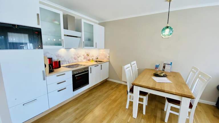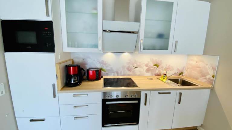 Die Unterkunft verfügt über eine voll ausgestattete Küchenzeile mit Kühlschrank, Geschirrspüler, Waschmaschine, Ofen und Mikrowelle, welche den Gästen die Zubereitung eigener Mahlzeiten ermöglicht.