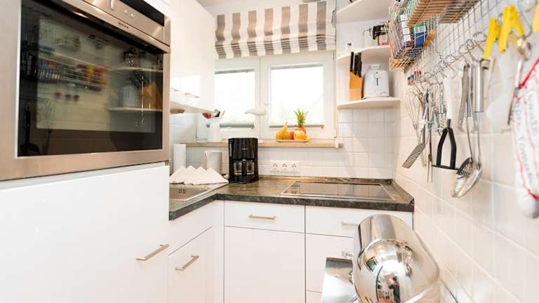 Die gut ausgestattete Küche verfügt über einen Kühlschrank und einen Geschirrspüler. Eine Verpflegung ist in der Beschreibung nicht aufgeführt, daher liegen keine Informationen zu direkten Essmöglichkeiten in der Unterkunft vor.