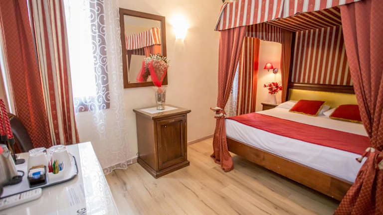 Die Residenz Rivo Alto ist ein elegantes Hotel in einem historischen Gebäude aus dem 14. Jahrhundert. Elegant eingerichtete Zimmer mit antiken Möbeln und Gemälden sorgen für eine besondere Atmosphäre. Für die Bequemlichkeit der Gäste sind alle Zimmer mit einem Flachbild-Sat-TV, einem Schreibtisch, einem Kleiderschrank, einem Wasserkocher und einem Kühlschrank ausgestattet. Einige Zimmer verfügen sogar über Himmelbetten oder Kronleuchter aus Glas.