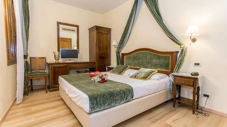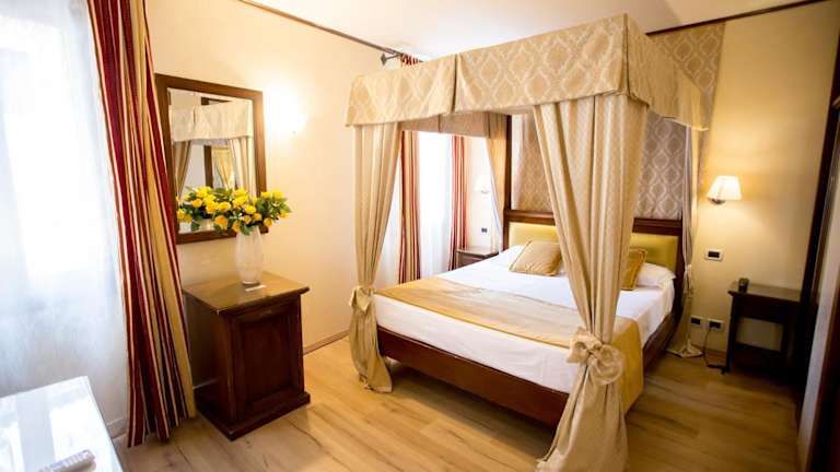 Die Zimmer in der Residenz Rivo Alto sind elegant und stilvoll eingerichtet, viele mit antiken Möbeln. Jedes Zimmer hat ein eigenes Bad, das mit einem Haartrockner und kostenfreien Pflegeprodukten ausgestattet ist. Zudem sorgt die tägliche Reinigung für ein angenehmes Ambiente. WLAN steht in allen Bereichen zur Verfügung.