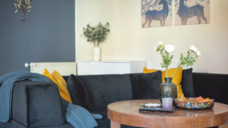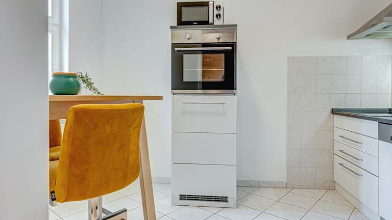 Die Ferienwohnung verfügt über 1 Schlafzimmer, ein Wohnzimmer sowie eine voll ausgestattete Küche mit Kühlschrank und Kaffeemaschine. Das Badezimmer ist mit einer Badewanne und kostenlosen Pflegeprodukten ausgestattet. Handtücher und Bettwäsche werden ebenfalls bereitgestellt.