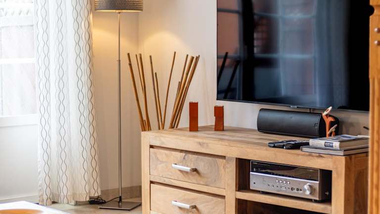 Das Ferienhaus bietet 2 Schlafzimmer, ein Wohnzimmer mit Flachbild-TV, eine gut ausgestattete Küche mit Kühlschrank und Geschirrspüler sowie ein Badezimmer mit Dusche. Handtücher und Bettwäsche werden zur Verfügung gestellt. Die Terrasse und der Gartenblick steigern die Bequemlichkeit des Aufenthalts.