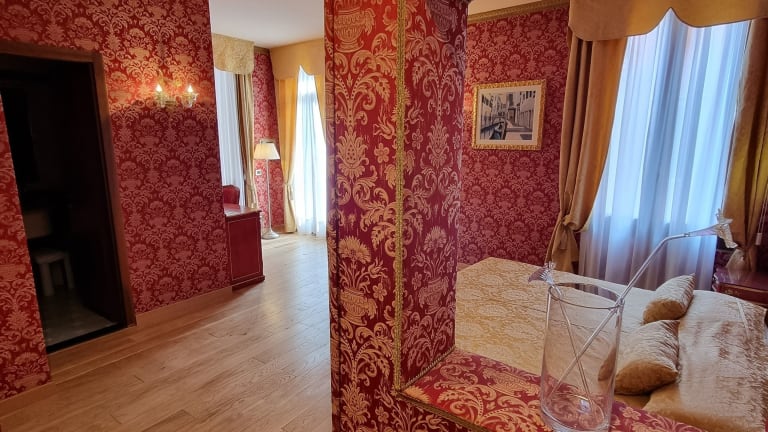 Die komfortablen Zimmer sind im venezianischen Stil eingerichtet und verfügen über luxuriöse Tapeten sowie Holz- oder Teppichböden. Jedes Zimmer ist klimatisiert und bietet Annehmlichkeiten wie einen LCD-TV, eine Minibar und ein eigenes Bad mit Dusche und Badewanne. Ein Balkon oder eine Terrasse gehört zur Standardausstattung der meisten Zimmer. Zu den weiteren Annehmlichkeiten zählen ein Schreibtisch, ein Safe, ein Kühlschrank, eine Tee-/Kaffeemaschine, Satelliten-TV und kostenloses Wifi.