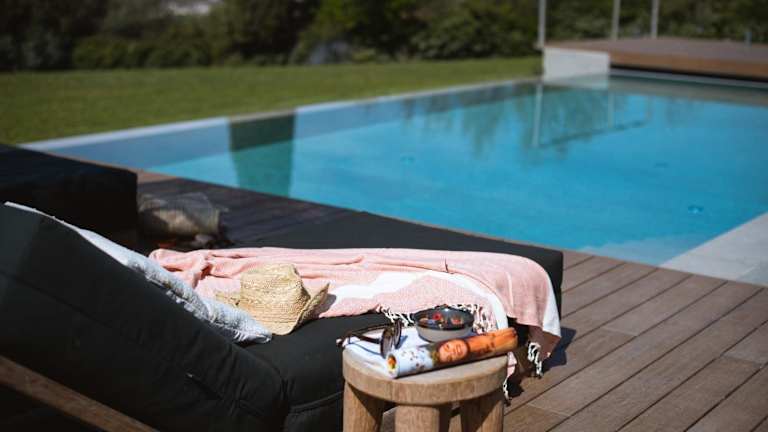 Diese klimatisierte Villa umfasst 5 Schlafzimmer, ein Wohnzimmer und eine voll ausgestattete Küche mit Kühlschrank und Kaffeemaschine. Es gibt 6 Badezimmer mit Bidet und Dusche, sowie die Bereitstellung von Handtüchern und Bettwäsche.