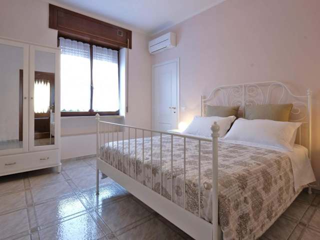 Die Ferienwohnung besteht aus 3 Schlafzimmern, einem Wohnzimmer und einer voll ausgestatteten Küche mit Kühlschrank und Kaffeemaschine. Zudem umfasst sie 2 Badezimmer mit Bidet und Dusche. Handtücher und Bettwäsche werden bereitgestellt, und die Ferienwohnung ist klimatisiert. Ein Balkon und ein Wasserkocher sind ebenfalls vorhanden.