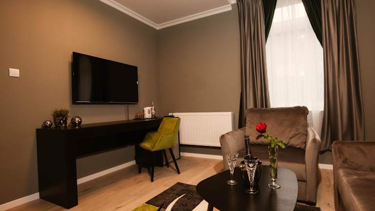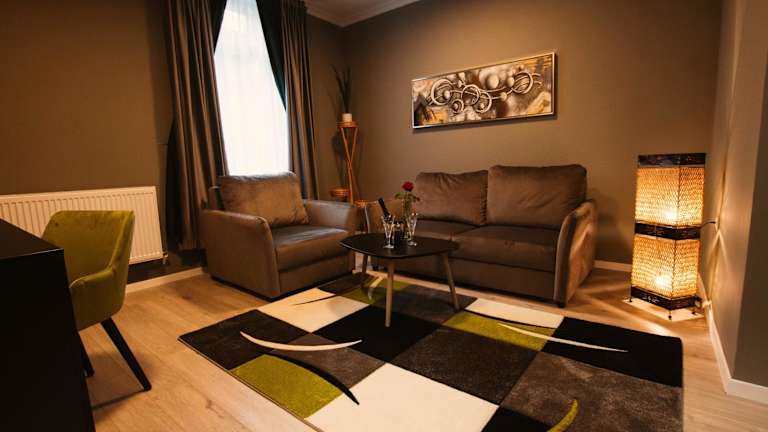 Resita Residence Sauna Apartment bietet eine helle und einladende Ferienwohnung mit klimatisierten Räumlichkeiten. Diese bietet eine heimelige Atmosphäre und modernen Komfort. Die Unterkunft ermöglicht den Gästen auch den Zugang zu einer Sauna.