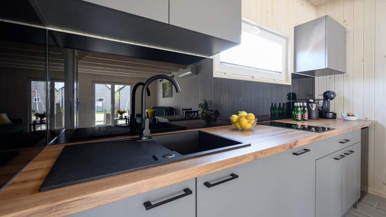 Die Wohneinheiten im Resort Za Lasem sind mit einem Sitzbereich, einem Satelliten-Flachbild-TV sowie einer voll ausgestatteten Küche mit Kühlschrank und Geschirrspüler ausgestattet. Jedes Zimmer verfügt über ein eigenes Badezimmer mit Dusche. Die Zimmer bieten auch eine Herdplatte, eine Kaffeemaschine und einen Wasserkocher, um den Komfort der Gäste zu gewährleisten.