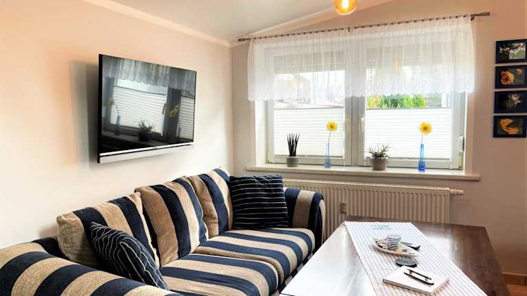 Das Ferienhaus verfügt über ein Schlafzimmer, ein Wohnzimmer mit Flachbild-TV und Sat-TV, sowie eine voll ausgestattete Küchenzeile mit Kühlschrank und Geschirrspüler. Des Weiteren gibt es ein Badezimmer mit Dusche. Handtücher und Bettwäsche sind in der Unterkunft zur Verfügung gestellt.