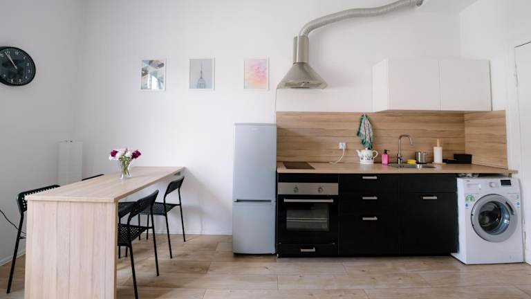 In der Ferienwohnung steht eine voll ausgestattete Küche zur Verfügung, in der die Gäste eigene Mahlzeiten zubereiten können. Zudem besteht die Möglichkeit, Essen zur Unterkunft liefern zu lassen.