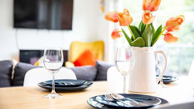 Das Ferienhaus hat 2 Schlafzimmer, ein Wohnzimmer und 2 Badezimmer. Die Küche ist mit einem Kühlschrank und einem Wasserkocher ausgestattet. Zudem gibt es einen Whirlpool. Handtücher und Bettwäsche werden bereitgestellt.