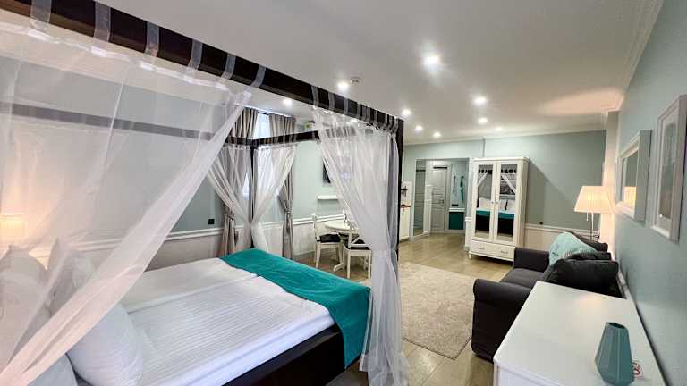 Die Zimmer sind mit einer umfangreichen Küchenausstattung, einem Safe, einem Satelliten Flachbild-TV, Bügelmöglichkeiten und einem Kleiderschrank ausgestattet. Ein Sitzbereich mit Schlafsofa ist ebenfalls vorhanden. Allergikerfreundliche Zimmer stehen zur Verfügung.