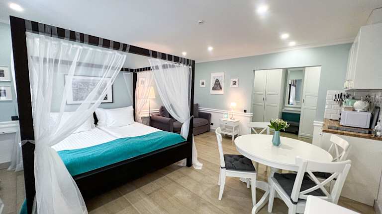 Revelton Suites Riga bietet gut ausgestattete Wohneinheiten, die über eine Küche mit Kühlschrank, Geschirrspüler sowie weiteren Küchenutensilien verfügen. Zudem sind Safe, Satelliten Flachbild-TV, Bügelmöglichkeiten, Kleiderschrank und Sitzbereich mit Schlafsofa vorhanden. Die Unterkunft ist eine Nichtraucherunterkunft und erlaubt keine Junggesellenabschiede.