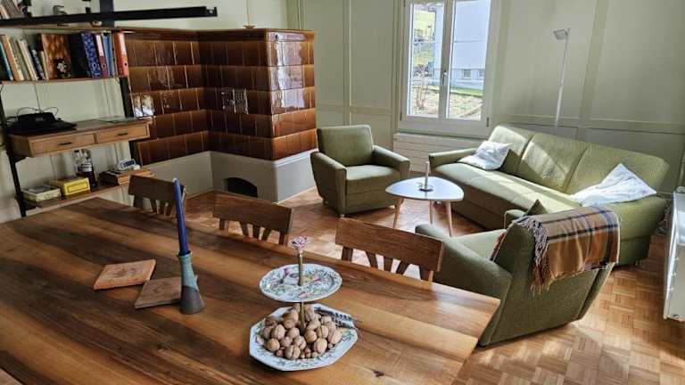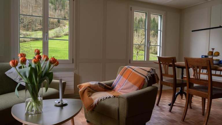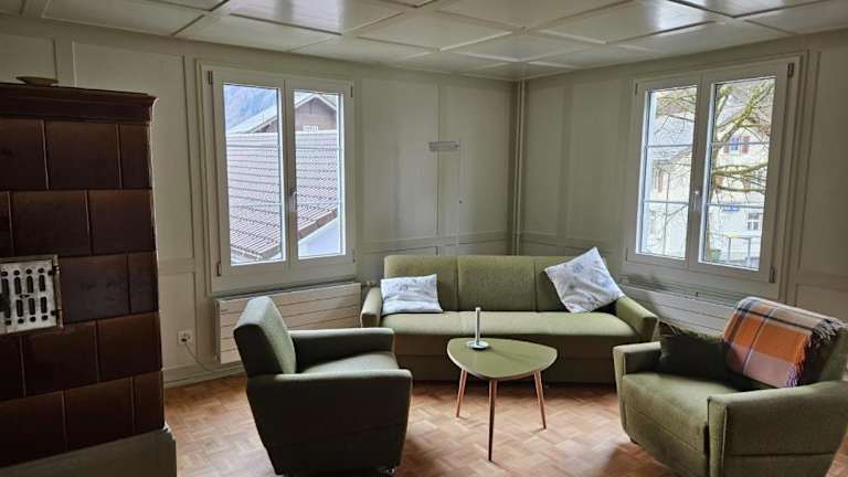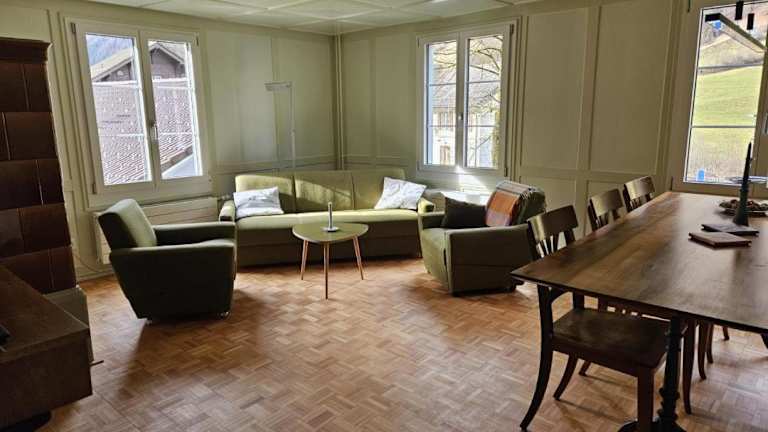 Die Unterkunft Revier z'Uhrmachers ist gelegen in Rüti. Die Umgebung bietet einen schönen Garten und eine herrliche Aussicht auf die Berge.