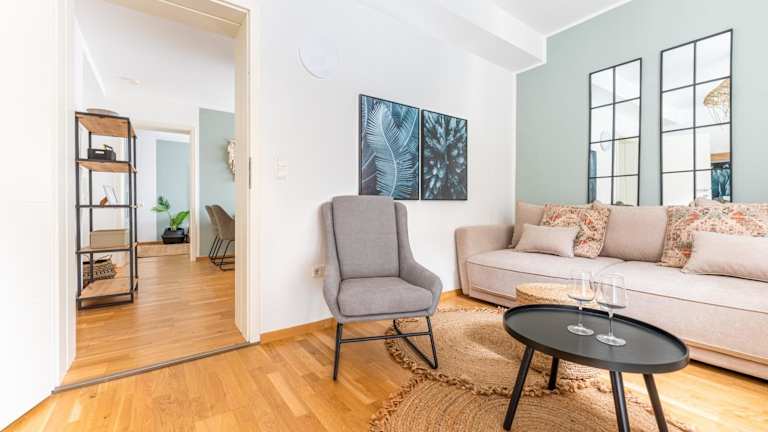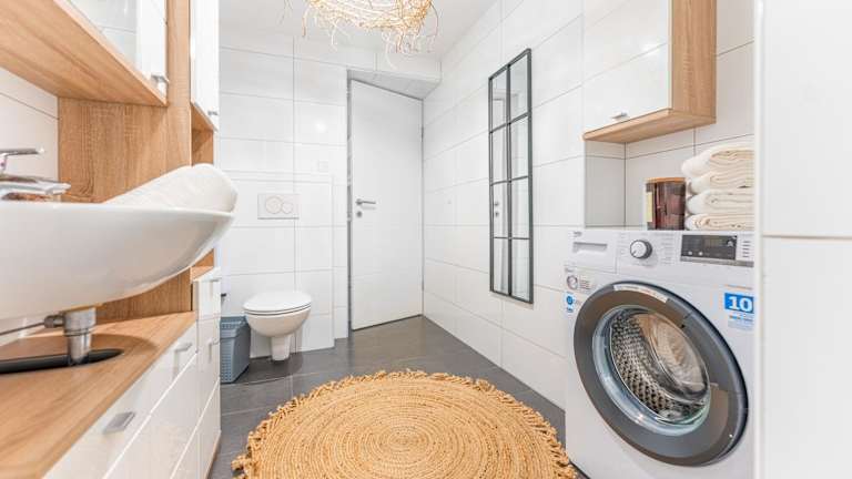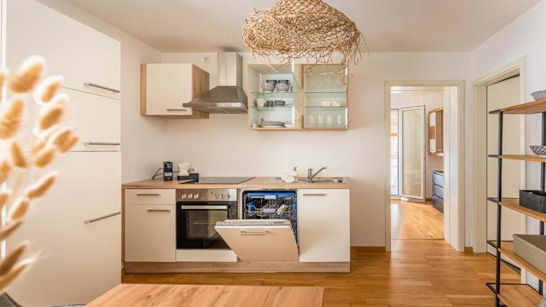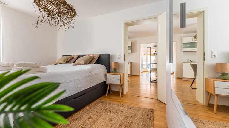 Die Ferienwohnung umfasst 1 Schlafzimmer und 1 Badezimmer. Zur Ausstattung gehören Bettwäsche, Handtücher, ein Flachbild-TV mit Satellitenkanälen sowie ein Essbereich. Die voll ausgestattete Küche ermöglicht eine selbständige Zubereitung von Speisen.