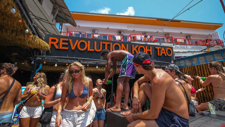 Die Revolution Hostel Koh Tao bietet Übernachtungsmöglichkeiten ausschliesslich für Erwachsene. Das Hostel verfügt über eine Gemeinschaftslounge und eine Bar sowie einen Nachtclub. Kostenloses WLAN ist in der gesamten Unterkunft vorhanden. Alle Zimmer sind mit einem eigenen Badezimmer und Klimaanlage ausgestattet, wobei einige Zimmer zusätzlich einen Balkon haben. Die Einrichtung weist ein junges und lebhaftes Ambiente auf und richtet sich an eine jugendliche Gästeschaft.
