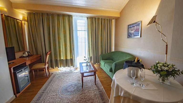 Die Zimmer im Hotel Rex sind klimatisiert und verfügen über ein Doppelbett sowie in den meisten Fällen über einen Balkon. Des Weiteren sind ein Safe, eine Minibar und ein Minikühlschrank vorhanden. Zu den Annehmlichkeiten zählen ein Telefon mit Direktwahl, ein TV-Gerät sowie Wifi. Jedes Badezimmer ist mit einer Dusche und einer Badewanne ausgestattet, und Haartrockner sind ebenfalls vorhanden. Bei Bedarf sind rollstuhlgerechte Zimmer mit einem barrierefreien Badezimmer buchbar.