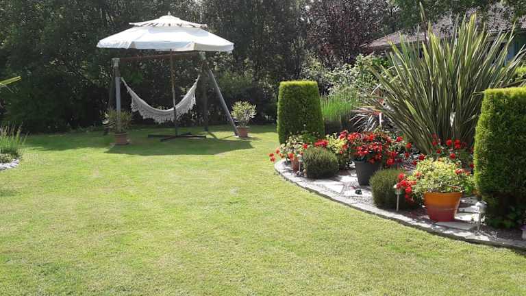 Die Ferienwohnung beinhaltet ein Schlafzimmer, eine Küche, die mit einem Kühlschrank und Geschirrspüler ausgestattet ist, einen Flachbild-TV sowie einen Sitzbereich. Das Badezimmer ist mit einer Dusche ausgestattet. Eine Terrasse und ein Garten stehen ebenfalls zur Verfügung.