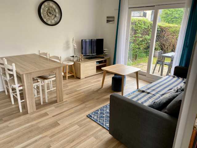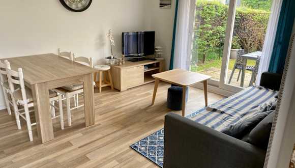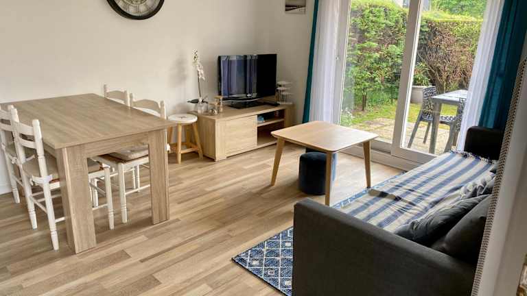 Rez de jardin CABOURG ist ein Ferienhaus, das direkt am Strand liegt und Übernachtungsmöglichkeiten in einem gut ausgestatteten Ambiente bietet. Die Unterkunft umfasst eine Terrasse mit Gartenblick und ermöglicht kostenlosen Zugang zu Fahrrädern und WLAN. Ein Casino ist ebenfalls vorhanden. Der Privatparkplatz ist kostenfrei.