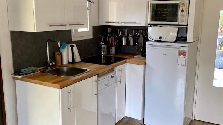 Die Unterkunft verfügt über ein Schlafzimmer, ein Wohnzimmer mit Flachbild-TV, eine gut ausgestattete Küche (u.a. Kühlschrank und Geschirrspüler) sowie ein Badezimmer mit Dusche. Handtücher und Bettwäsche können gegen Aufpreis bereitgestellt werden. Für zusätzlichen Komfort stehen Grillmöglichkeiten zur Verfügung.