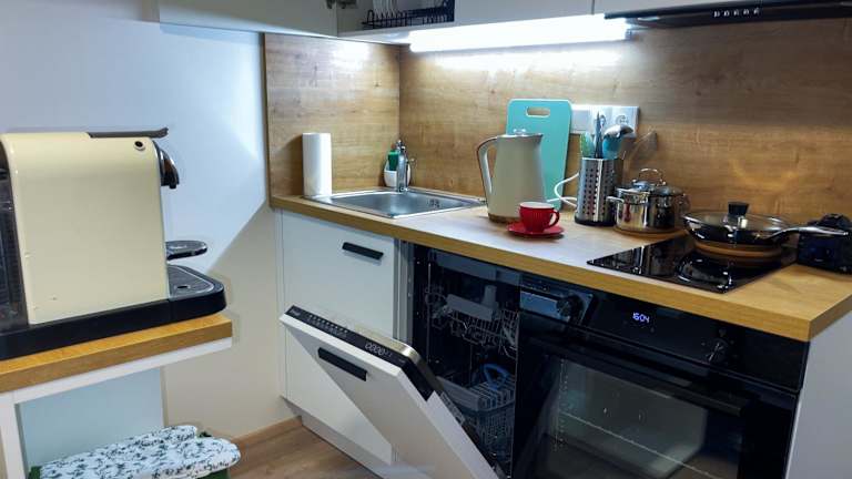 Die Ferienwohnung verfügt über 1 Schlafzimmer und bietet Annehmlichkeiten wie einen Flachbild-TV, einen Essbereich sowie eine Küchenzeile, die mit einem Kühlschrank und einem Geschirrspüler ausgestattet ist. Handtücher und Bettwäsche werden zur Verfügung gestellt.