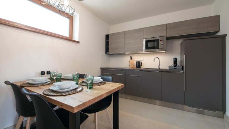 Die Unterkunft bietet eine gut ausgestattete Küche, die über einen Kühlschrank, Geschirrspüler, Mikrowelle, Herdplatte, Toaster, Kaffeemaschine und Wasserkocher verfügt. Es gibt auch Grillmöglichkeiten für gemütliche Grillabende. Die Gäste können sich auf selbstgekochte Mahlzeiten in der heimeligen Atmosphäre der Unterkunft freuen.