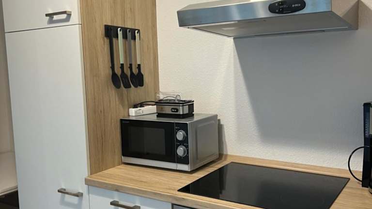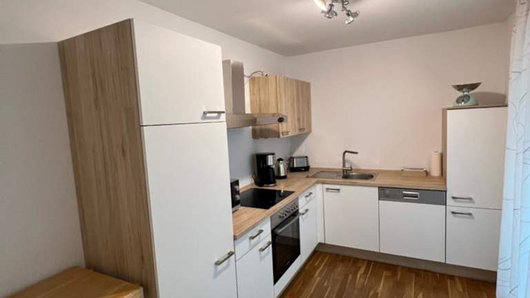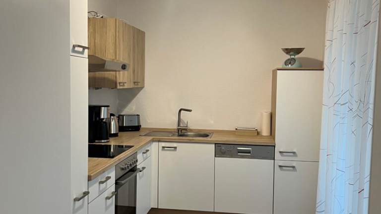 In der Ferienwohnung steht eine voll ausgestattete Küche zur Verfügung, die einen Kühlschrank und einen Geschirrspüler beinhaltet. Handtücher und Bettwäsche werden bereitgestellt. Verpflegungsmöglichkeiten sind nicht explizit erwähnt.