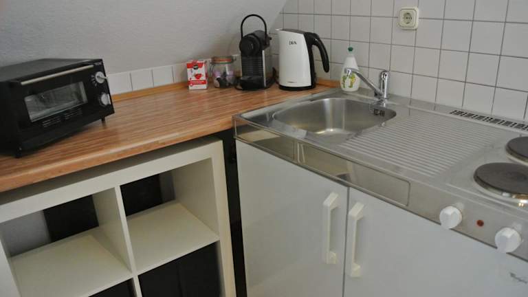 Die Ferienwohnung umfasst 1 Schlafzimmer, ein Wohnzimmer, eine voll ausgestattete Küchenzeile mit Kühlschrank und Kaffeemaschine sowie ein Badezimmer mit Dusche und kostenlosen Pflegeprodukten. Handtücher und Bettwäsche werden bereitgestellt.