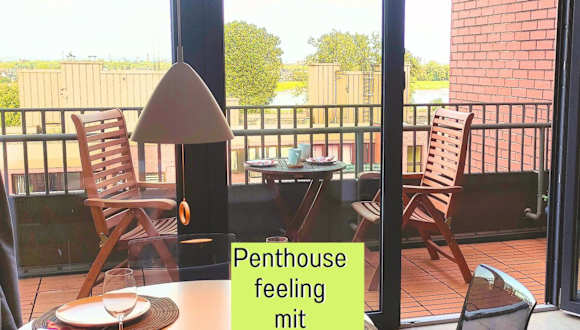 Das Penthouse Wolke7 ist eine elegante Unterkunft, die modernen Stil mit heimeliger Atmosphäre kombiniert. Die elegante Einrichtung und die grosszügigen Fenster sorgen für viel Licht und ein angenehmes Ambiente. Die Gäste können sich auf eine entspannte Atmosphäre freuen.