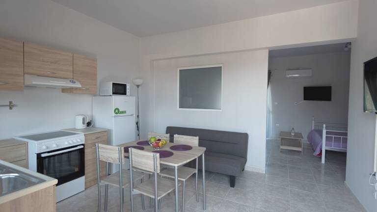 Die klimatisierten Apartments verfügen über einen Balkon, auf dem Sie den Blick auf die Berge genießen können. Jedes Apartment bietet einen gemütlichen Sitzbereich, einen Flachbild-Kabel-TV und eine voll ausgestattete Küche mit einem Kühlschrank, einem Backofen, einer Mikrowelle, einem Kochfeld, einer Kaffeemaschine und einem Wasserkocher. Das private Badezimmer ist mit einer Dusche und kostenlosen Pflegeprodukten ausgestattet.