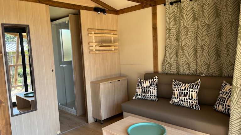 Ri-Veu corse dans camping marina di sorbo bietet Übernachtungsmöglichkeiten in einem heimeligen Ambiente. Die Unterkunft hat einen Garten mit Terrasse, der den Gästen eine erholsame Atmosphäre bietet.