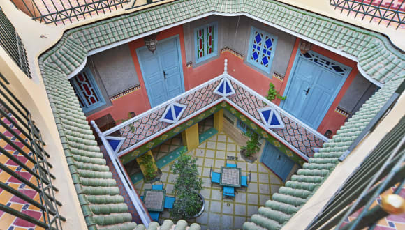 Riad Aicha - Marrakech is a Bed&Breakfast Riad Aicha liegt östlich in der Medina mit einer Viertelstunde Spaziergang vom großen Platz Jamaa-el-Fna. Es ist der älteste Teil von Marrakech und hat seine Authentizität sein mittelalterliches Flair noch bewahrt. Bab Aïlen, zum ersten Mal im Jahre 1130 beschrieben, ist das Stadttor durch die große Stadtmauer der Medina. Boutouil ist eine Straße, in der sich das Leben noch genauso abspielt, wie vor hundert Jahren. Wenn man Riad Aicha erreicht, lässt man die Hektik der Stadt hinter sich. Hier ist man in einem modernen, aber auch traditionellen Riad: Eine Oase der Ruhe und Annehmlichkeit. Unser Team strebt danach, die Gastfreundlichkeit und Behilflichkeit der Bewohner des schönen Landes Marokko zu widerspiegeln zu einem besonderen Erlebnis machen. Im Erdgeschoss befinden sich zwei Zimmer und ein Salon mit Karim und Bibliothek, ein beheiztes Schwimmbad und die Küche. Im ersten Stock gibt es vier Zimmer und eine Balustrade. Auf der Dachterrasse befinden sich ein Berberzelt und ein Hammam (arabisches Dampfbad) für maximal vier Personen. Zudem gibt es zwei geräumige Dachterrassen, fűr die, die von Marokkos Sonne – die beinahe immerzu scheint –nicht genug bekommen kőnnen. An der hohe terrasse ist ein Sonnezimmer. Alle Zimmer haben eine Klimaanlage und ein Belüftungssystem im Badezimmer. Das Frühstück, das im Preis inbegriffen ist, kann auf Wunsch auch auf der Dachterrasse oder im Berberzelt serviert werden. Die dreigängigen Mahlzeiten (Marokkanische Küche) können im Patio (Innenhof) oder im Salon verzehrt werden. Das Hammam ist ab 16 Uhr geöffnet und kann für 30 Minuten reserviert werden. Für Benutzung des Hammams und auch für andere Extras (zum Beispiel Champagner auf der Dachterrasse oder Massage) gelten gesonderte Tarife. Vom Riad aus kann man die Stadt Marrakech bequem zu Fuß erkunden. Man kann vom Riad aus ein- oder mehrtägige Touren machen. Wir können Ihnen dabei mit einer großen Auswahl an Touren von Dienst sein. Es werden auch immer 6-tägige Reisen durch die Sahara, ins Gebirge Hoher Atlas und in andere Gebiete angeboten. Täglich gehen Touren gehen zum Beispiel nach Essaouira und Ouarzazate, zum Wasserfall d’Ouzoud und ins Tal von l’Ourika. Im Riad kann man WIFI (drahtloses Internet) und den drahtlosen Drucker kostenlos benutzen. Das warmes Wasser für die Dusche und das Hammam wird von unserer umweltschonenden Solaranlage bereitgestellt. Wir sind auf einem speziellen Internat für Mädchen begangen: www.efamorocco.org und ein Zentrum für benachteiligte Straßenkinder.: www.centrefiersetforts.com Die Spietzen der Manager geht in de Topf, diese zu finanzieren.