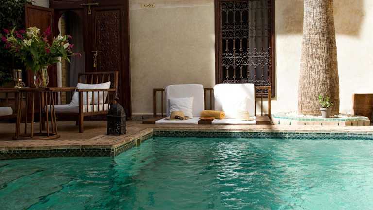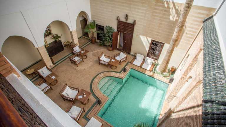 Im Herzen der Kasbah, direkt neben dem Königlichen Palast. Der Platz Djemaa el Fna ist zu Fuss in 15 Minuten erreichbar. Der Flughafen Marrakesch-Menara liegt nur 3 km entfernt.
