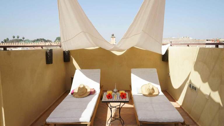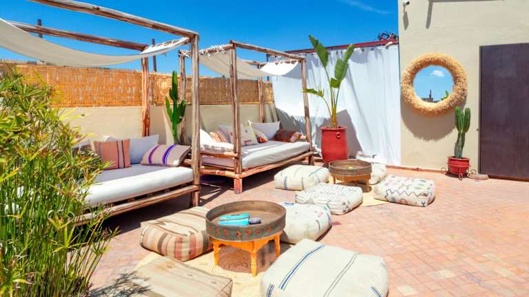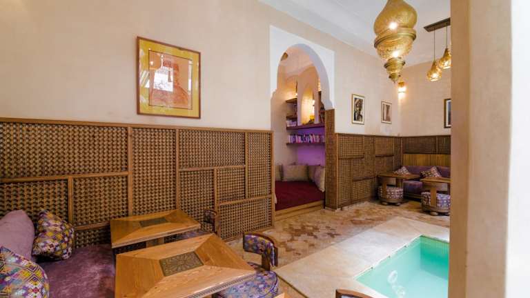 Im Dar Alif Hotel können Sie den kleinen Pool mit Whirlpool nutzen, um sich zu entspannen. Es gibt auch eine Terrasse und einen Innenhof mit Liegestühlen, auf denen Sie die marokkanische Sonne genießen können.
