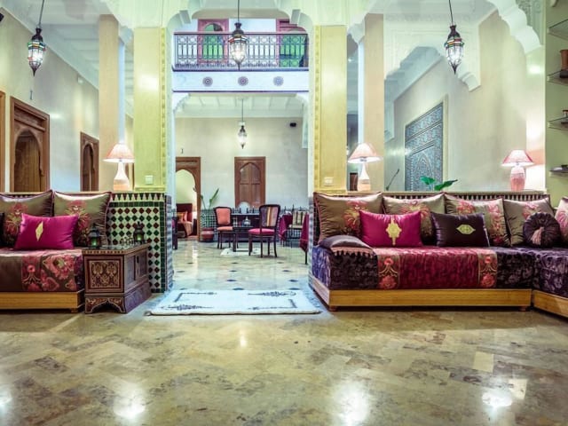 Das Riad Des Nations in Marrakesch bietet seinen Gästen einen komfortablen Aufenthalt in einer Pension mit marokkanischem Flair. Genießen Sie klimatisierte Zimmer, kostenfreies WLAN und eine Terrasse. Die Lage des Riad Des Nations ist ideal, da es in der Nähe vieler beliebter Sehenswürdigkeiten liegt. Das freundliche Personal steht Ihnen rund um die Uhr zur Verfügung und organisiert gerne Ausflüge für Sie. Starten Sie jeden Morgen mit einem köstlichen kontinentalen Frühstück und probieren Sie im hoteleigenen Restaurant die marokkanische Küche.