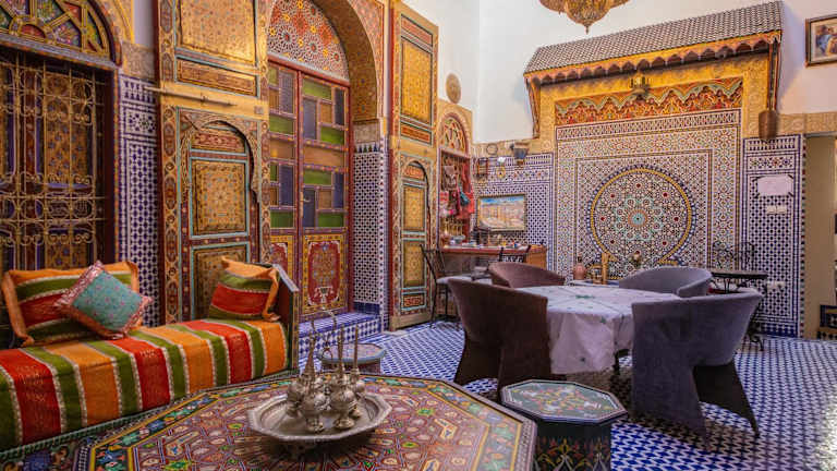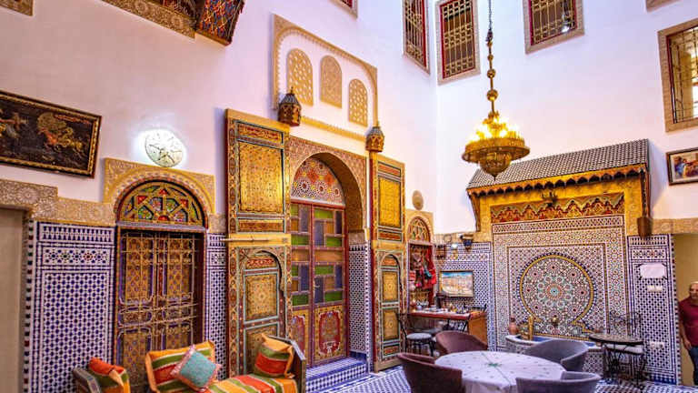 Die Unterkunft Riad Fes Hayat - Confort Stay befindet sich in Fès, im Bezirk Fes El Bali. Interessante Orte wie Batha Square, Medersa Bouanania und Bab Bou Jeloud Fes sind in der Umgebung leicht zu erreichen. Der Königspalast Fes ist weniger als 2,8 km entfernt und der Bahnhof Fes liegt in etwa 4,1 km Entfernung. Der nächstgelegene Flughafen, Flughafen Fès-Saïss, befindet sich 18 km von der Unterkunft entfernt.