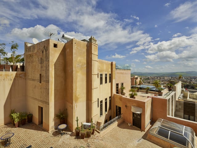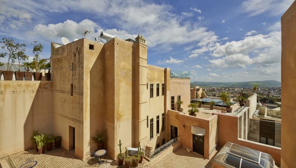 Riad Fès - Relais & Châteaux befindet sich im Herzen der antiken Stadt Fez. Mit spektakulären Ausblicken auf die Medina und das Atlasgebirge ist das Riad Fès - Relais & Châteaux ideal für Geschäfts- und Urlaubsreisende. Die verschiedenen Stile der vier Innenhöfe von Riad Fès - Relais & Châteaux bieten den Gästen vier Erlebnisse in einem. Islamische Schnitzereien, antike Türen, unzählige Mosaike und ein Flügel unter einer wirklich beeindruckenden Fassi-Lampe schaffen eine blendende Atmosphäre. Eine unverwechselbare Kulisse enthüllt sich, wenn Sie den zweiten Patio betreten. Schimmernde Ausblicke auf Alhambra-ähnliche Patios, Kolonnaden, subtile Murmeln und helle Bögen marschieren um einen atemberaubenden smaragdgrünen Pool. Unser Garten bietet Momente der Frische im Schatten von Orangen-, Zitronen- und Lorbeerbäumen und lauscht dem Brunnen mit Rosenblättern. Der Pool befindet sich im neuen zeitgenössischen Pavillon. Mit 14 Metern Länge und 1,5 Metern Tiefe ist es der ideale Ort für Entspannung und Frische ... Quartieren Sie sich im 5-Sterne Riad Fes ein und erleben Sie, was die Stadt Fes und ihre Umgebung zu bieten haben. Das Riad Fes umfasst 30 Wohneinheiten mit Klimatisierung. WLAN nutzen die Gäste kostenfrei. Zu den Räumlichkeiten gehören ein Café, eine Bar, ein Restaurant, ein VIP-Bereich sowie ein Konferenzraum. Die Anlage ist mit einem Geschenkeladen ausgestattet. Wäscheservice, Weckdienst, Chemische Reinigung sowie Bügelservice stehen für Sie ebenfalls zur Verfügung. Für die Dauer Ihres Besuchs stehen Ihnen kostenpflichtige Hotelparkplätze zur Verfügung. Das Haus bietet den Gästen ebenfalls einen Flughafentransfer.